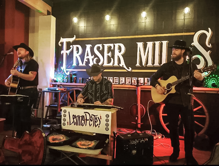 Lenny and Pete’s inaugural ‘big break’ occurred in July 2021 during one of their impromptu park jam sessions. Their music caught the attention of the proprietor of Port Moody’s Fraser Mills Brewery, resulting in a consistent Friday night residency for the next two years — marking the first chapter in their journey for which they will forever remain grateful. Thank you Chris at Fraser Mills! ♡♡♡.Fraser Mills Brewery Logo